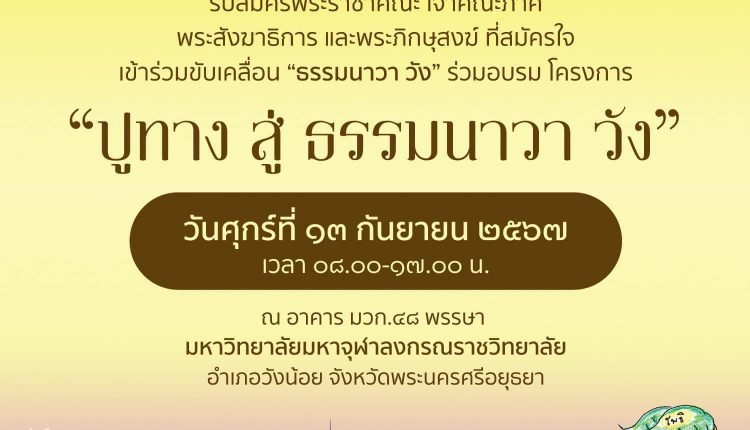 โครงการ “ปูทาง สู่ ธรรมนาวา วัง“ รับสมัครพระราชาคณะ เจ้าคณะภาค พระสังฆาธิการ และพระภิกษุสงฆ์