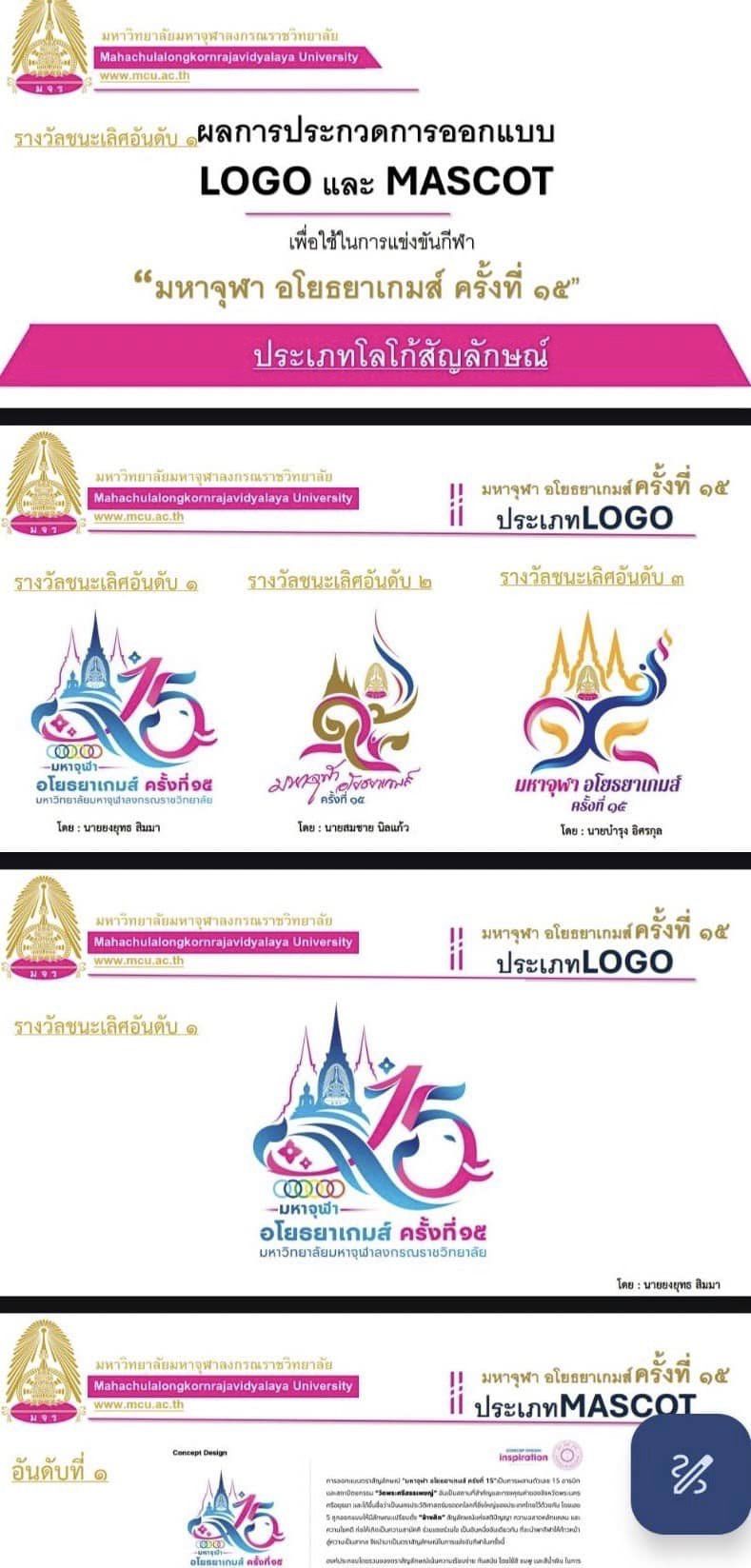 รางวัลผู้ชนะการประกวดออกแบบโลโก้สัญลักษณ์ งานกีฬาบุคลากร "มหาจุฬา อโยธยาเกมส์ ครั้งที่ ๑๕ "