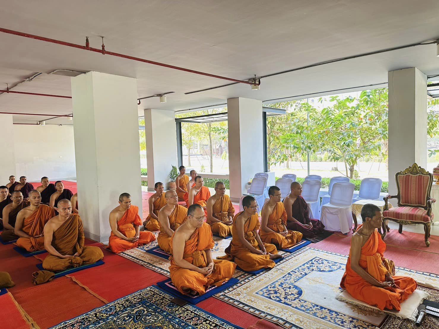 พระเดชพระคุณ พระธรรมวัชรบัณฑิต, ศ.ดร. อธิการบดีมหาวิทยาลัยมหาจุฬาลงกรณราชวิทยาลัย เมตตาเป็นองค์ประธานนำผู้บริหาร คณาจารย์ เจ้าหน้าที่ และนิสิตต่างชาติในหอพักสวดมนต์ทำวัตรเช้า เจริญจิตภาวนา ได้ให้โอวาทกับผู้เข้าร่วมโครงการเนื่องในวาระดิถีขึ้นปีใหม่ 2567 เพื่อเป็นขวัญและกำลังใจและเสริมสร้างความสัมพันธ์อันดีระหว่าง ผู้บริหาร คณาจารย์ เจ้าหน้าที่ และนิสิตหอพัก อันช่วยส่งเสริมกิจกรรมนิสิตจิตอาสา ส่งเสริมวินัยนิสิต ของหอพักนิสิตนานาชาติ ได้เป็นอย่างดี