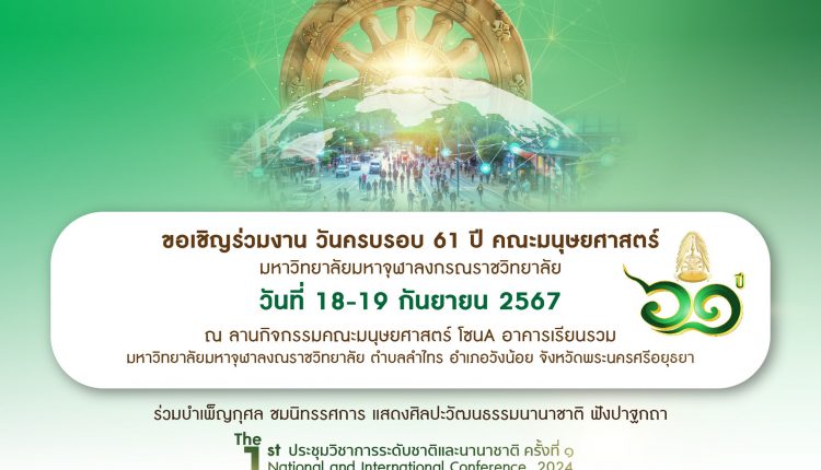 ขอเชิญร่วมงาน วันครบรอบ 61 ปี คณะมนุษยศาสตร์ มหาวิทยาลัยมหาจุฬาลงกรณราชวิทยาลัย