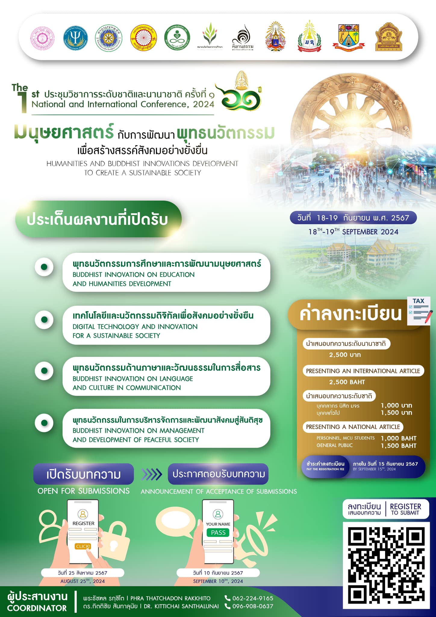 ขอเชิญร่วมประชุมวิชาการระดับชาติและนานาชาติ ครั้งที่ ๑ โดย คณะมนุษยศาสตร์ มจร
