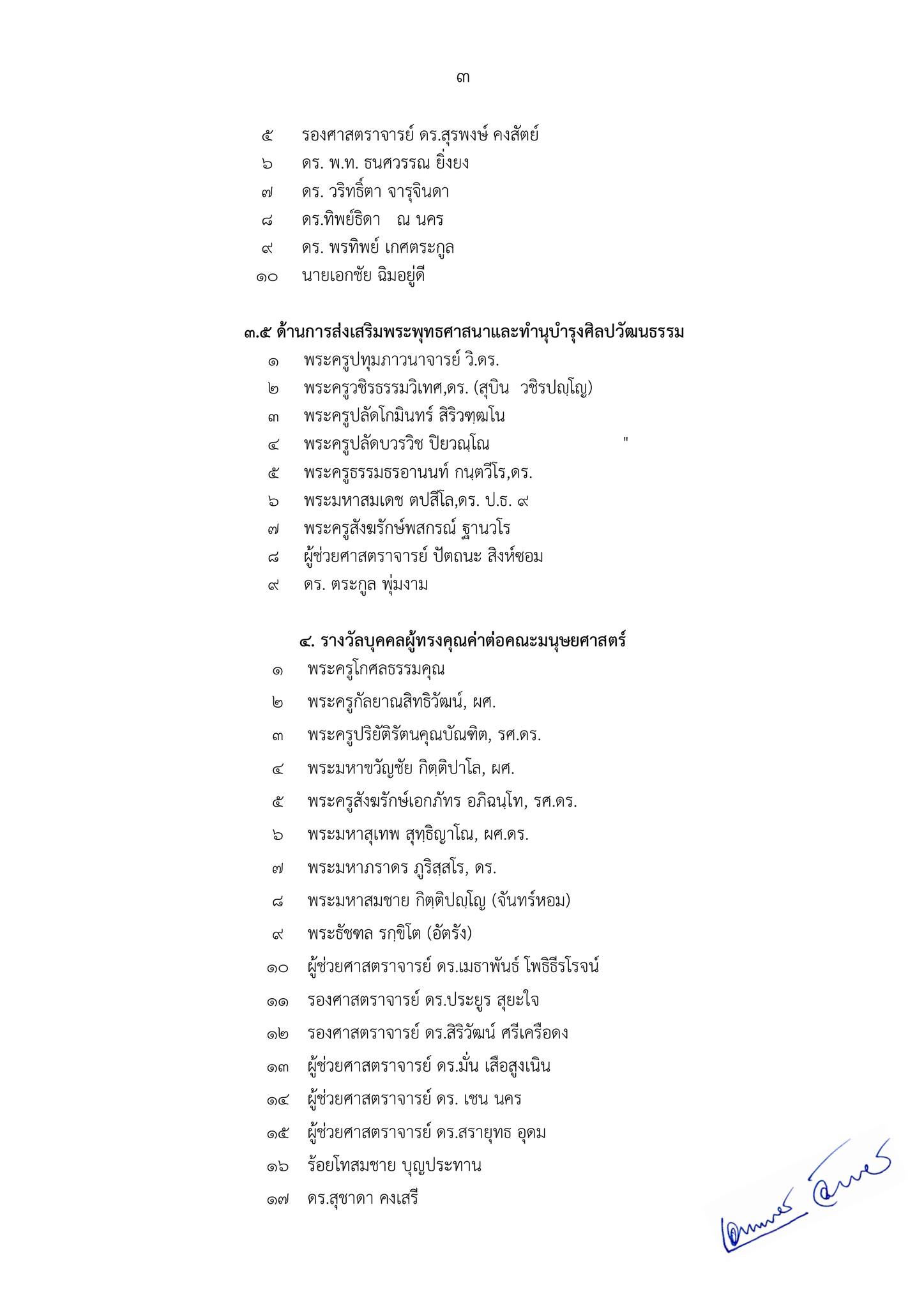 -ด้านการส่งเสริมพระพุทธศาสนาและทำนุบำรุงศิลปวัฒนธรรม และบุคคลผู้ทรงคุณค่าต่อคณะมนุษยศาสตร์