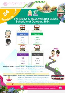 “ตารางเดินรถเมล์รับส่งนิสิต ประจำเดือน ตุลาคม 2567” The BMTA & MCU Affiliated Buses Schedule of October, 2024