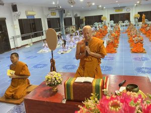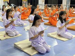 พบปะมอบธรรมให้กำลังใจสามเณรและศีลจาริณี และนำทำวัตรสวดมนต์ในโครงการ กิจกรรมบรรพชาสามเณรและกิจกรรมศีลจาริณี (บวชชีพราหมณ์)โรงเรียนมงฟอร์ตวิทยาลัย แผนกประถม