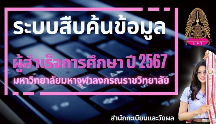 ระบบสืบค้นฐานข้อมูลผู้สำเร็จการศึกษา ปีพุทธศักราช 2567 โดย สำนักทะเบียนและวัดผล