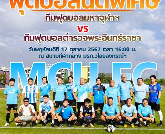 เชิญเชียร์ ฟุตบอลกระชับมิตรนัดพิเศษวันออกพรรษา มหาจุฬาฯ พบ ตำรวจพระอินทร์ราชา