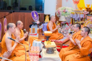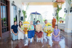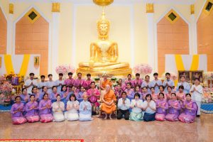 The Most Ven.Phratheppawaramethi , Assoc. Prof. Dr. Vice Rector for Administration, Deputy Head of Region 15, Acting Abbot of Wat Mahachulalongkornratchuthit give PhraKhrusrichariyabundit, Dr. Assistant Abbot of Wat Mahachulalongkornratchuthit Along with International students who were stayed Lent at University. Perform the kaṭhinatthārā ceremony or Anumodhana Kathina prayer