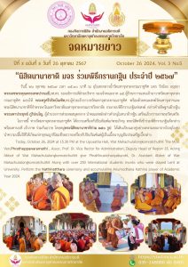 วันที่ ๒๖ ตุลาคม ๒๕๖๗ เวลา ๑๕.๓๐ นาที ณ อุโบสถกลางน้ำ วัดมหาจุฬาลงกรณราชูทิศ