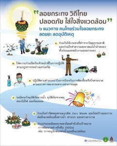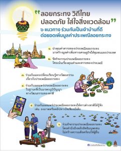 และรณรงค์ให้ประชาชนเลือกใช้กระทงที่เหมาะสมกับแหล่งน้ำโดยเลือกใช้วัสดุที่ทำจากธรรมชาติ เพื่อลดปริมาณขยะ ย่อยสลายง่าย และไม่ให้ส่งผลกระทบกับสิ่งแวดล้อม