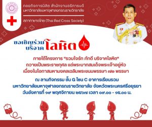 ขอเชิญร่วมบริจาคโลหิต “โครงการรวมใจรัก ภักดี บริจาคโลหิต”