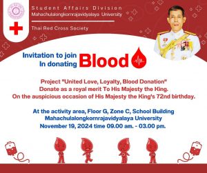 ขอเชิญร่วมบริจาคโลหิต “โครงการรวมใจรัก ภักดี บริจาคโลหิต” 19 พย 67