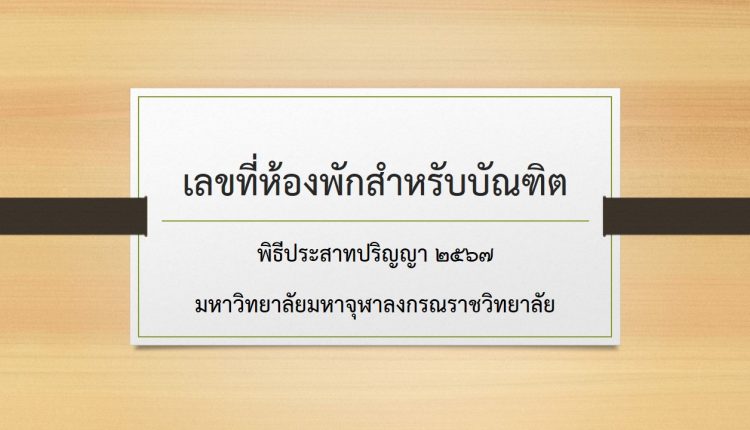 แจ้งเลขที่ห้องพัก สำหรับบัณฑิต ผู้ที่ได้แจ้งความประสงค์ขอเข้าพัก ณ อาคารเรียนรวม ฝ่ายปฏิคมในประเทศพิธีประสาทปริญญา ๒๕๖๗