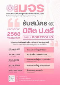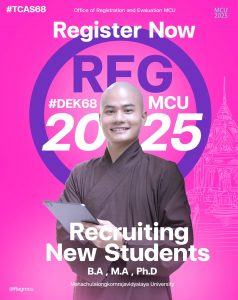 ประชาสัมพันธ์ New Admission of MCU Academic year 2025 By บัญชา นารี On พ.ย. 27, 2024 11 Share มจร เปิดรับสมัครนิสิตใหม่ปีการศึกษา 2568 New Admission of MCU Academic year 2025 #สมัครเรียน TCAS รอบที่ 1 การรับแบบ Portfolio ตั้งแต่วันที่ 1 พฤศจิกายน 67 -15 ม.ค.68 # TCAS Admission Round 1 Via Portfolio Since 1st November 2024 -15th January 2025 สอบถามข้อมูลเพิ่มเติมที่ For more Information : https://lin.ee/PrTX0dk สารสนเทศการรับสมัครเรียน ADMISSIONS INFORMATION : https://reg.mcu.ac.th/ams โทร Tel 098-834-0506 11 Share FacebookEmail
