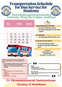 ได้จัดสวัสดิการแก่นิสิต เพื่ออำนวยความสะดวกในการเดินทางศึกษา ณ มหาวิทยาลัยมหาจุฬาลงกรณราชวิทยาลัย จ.พระนครศรีอยุธยา