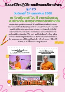 โครงการสัมมนานิสิตปฏิบัติศาสนกิจและปฏิบัติงานบริการสังคม รุ่น ๗๐ (ส่วนกลาง) ปีการศึกษา ๒๕๖๗