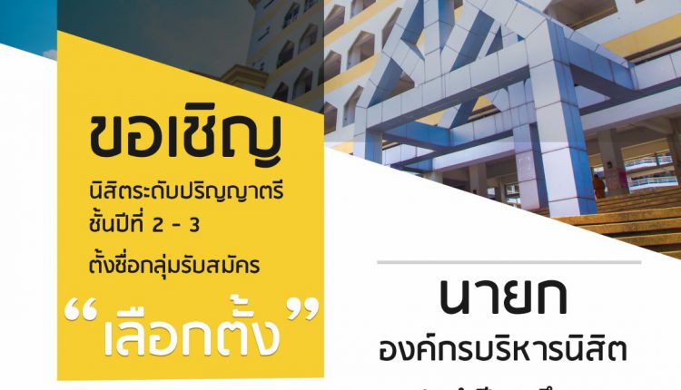 ขอเชิญนิสิตระดับปริญญาตรี ชั้นปีที่ 2 – 3 ตั้งชื่อกลุ่มรับสมัครเลือกตั้ง นายกองค์กรบริหารนิสิต