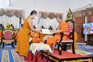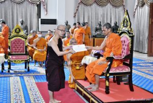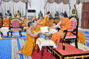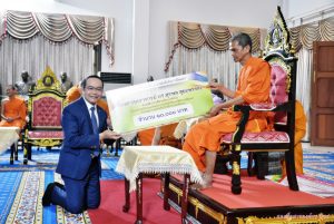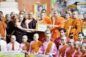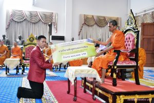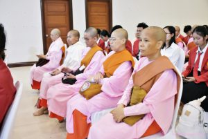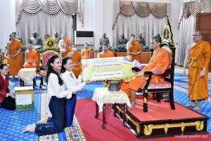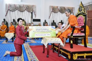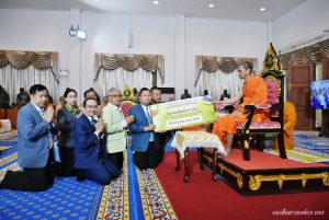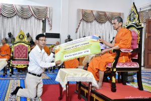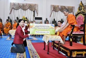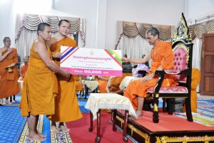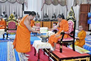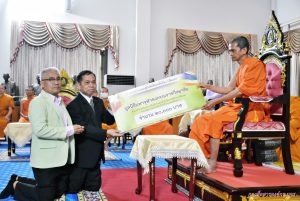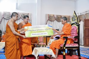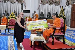 จากนั้น รศ.ดร.สมศักดิ์ บุญปู่ ผู้ช่วยอธิการบดีฝ่ายกิจการทรัพย์สิน ขานรายชื่อผู้ร่วมบริจาคช่วยเหลือภัยพิบัติแผ่นดินไหวเข้าถวายเงินบริจาคต่อประธานในพิธี จากนั้น บริจาค มอบเสื้อผ้า ยารักษาโรค และอาหารแห้ง แก่นิสิตชาวเมียนมาที่ประสบภัยพิบัติแผ่นดินไหว ณ อาคารวิปัสสนาธุระ สมเด็จพระพุฒาจารย์ (อาจ อาสภมหาเถร) ชั้น ๒ มหาวิทยาลัยมหาจุฬาลงกรณราชวิทยาลัย ตำบลลำไทร อำเภอวังน้อย จังหวัดพระนครีอยุธยา