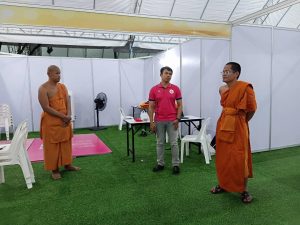พระมหาราชัน จิตฺตปาโล, ดร.ผู้ช่วยอธิการบดีฝ่ายกิจการนิสิต พระครูสุตรัตนบัณฑิต, ดร.ผู้รักษาการผู้อำนวยการกองกิจการนิสิต พร้อมด้วยนายประเสริฐ คำนวล รองผู้อำนวยการกองกิจการนิสิต และบุคลากรเจ้าหน้าที่ นิสิตปฏิบัติงาน นิสิตจิตอาสา ร่วมวางแผนและดำเนินการติดตั้งป้ายออกบูธในนามมหาวิทยาลัยมหาจุฬาลงกรณราชวิทยาลัย ณ ลานจอดรถลานเต็นท์กิจกรรม พุทธมณฑล จ.นครปฐม ในโอกาส ”สืบสานงานพ่อ ต่อยอดทุนเล่าเรียนหลวงสำหรับพระสงฆ์ไทย” ร่วมสืบสานพระราชปณิธานในการทำนุบำรุงพระพุทธศาสนา