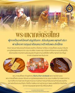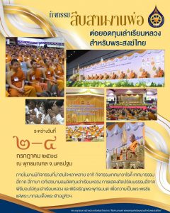 ขอเชิญประชาชนร่วมเป็นส่วนหนึ่งในการสืบสานพระราชปณิธานพระบาทสมเด็จพระเจ้าอยู่หัว ในการทำนุบำรุงพระพุทธศาสนาให้ยั่งยืน ในงาน “สืบสานงานพ่อ ต่อยอดทุนเล่าเรียนหลวงสำหรับพระสงฆ์ไทย”