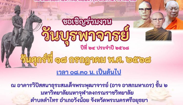 ขอเชิญเข้าร่วมงาน “วันบุรพาจารย์” ๑๘ กรกฎาคม ๒๕๖๘ ตั้งแต่เวลา ๐๘.๓๐ น. เป็นต้นไป
