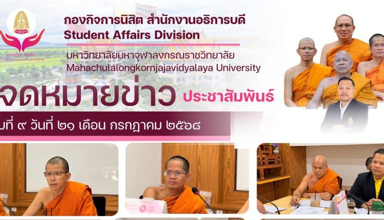พระธรรมวชิโรดม, รศ.ดร.รองอธิการบดีฝ่ายกิจการนิสิต มอบให้ พระมหาราชัน จิตฺตปาโล,ดร.ผู้ช่วยอธิการบดีฝ่ายกิจการนิสิต เป็นประธานการประชุมผู้บริหาร และบุคลากร กองกิจการนิสิต ประจำเดือนกรกฎาคม ครั้งที่ ๕/๒๕๖๘ ณ ห้องประชุมกองกิจการนิสิต A ๓๐๐ อาคารเรียนรวม ชั้น ๓ มหาวิทยาลัยมหาจุฬาลงกรณราชวิทยาลัย อำเภอวังน้อย จังหวัดพระนครศรีอยุธยา เพื่อติดตามและหนุนเสริมการดำเนินงานตามภารกิจและงานที่มหาวิทยาลัยมอบหมาย