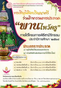 ขอเชิญนิสิตระดับปริญญาตรีทุกชั้นปี ร่วมกิจกรรมการประกวด”พานไหว้ครู”