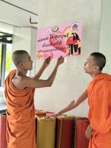 The Most Venerable Chairman graciously presided over the unveiling of the Abstinence Zone within the University, promoting the elimination of health risk factors. This campaign and public awareness initiative, conducted under the framework of “Zero Tolerance Areas,” was carried out in the dormitory areas with the participation of monastic student representatives, both Thai and international.