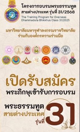 โครงการอบรมพระธรรมทูตสายต่างประเทศ รุ่นที่ ๓๑/๒๕๖๘ รับสมัครออนไลน์