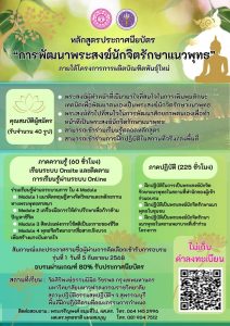 ขอเชิญพระภิกษุร่วมเรียนรู้หลักสูตร “การพัฒนาพระสงฆ์นักจิตรักษาแนวพุทธ” ภายใต้โครงการการผลิตบัณฑิตพันธุ์ใหม่