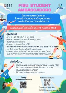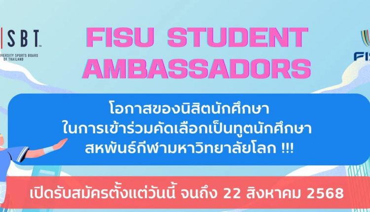 โอกาสมาถึงแล้ว !!! ขอเชิญนิสิต สมัคร FISU Student Ambassadors เฟ้นหาตัวแทนนิสิตนักศึกษาไทยสู่เวทีกีฬามหาวิทยาลัยโลก
