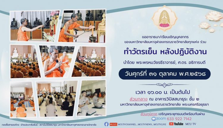 ขออาราธนา/เรียนเชิญบุคลากร มจร ทุกแห่ง ร่วมทำวัตรเย็น หลังปฏิบัติงาน