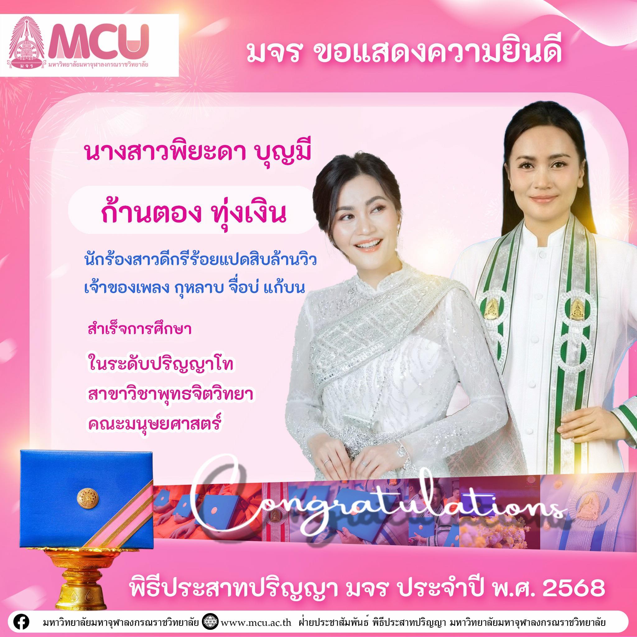 “ก้านตอง ทุ่งเงิน” นักร้องดัง รับปริญญาโท มหาจุฬาฯ