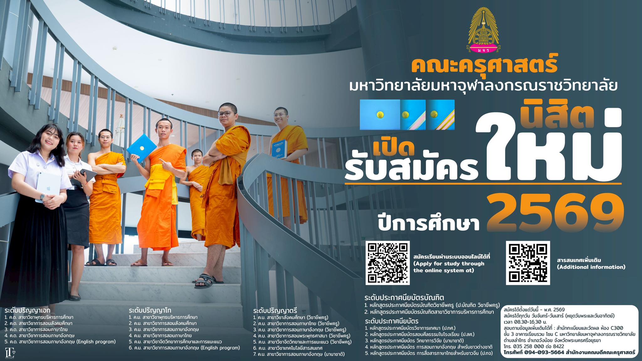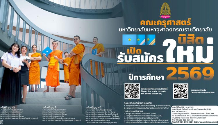 ประชาสัมพันธ์ คณะครุศาสตร์ มหาวิทยาลัยมหาจุฬาลงกรณราชวิทยาลัย #เปิดรับสมัครนิสิตใหม่ ปีการศึกษา 2569 ระดับปริญญาตรี โท เอก By บัญชา นารี Last updated ธ.ค. 2, 2025 6 Share #คณะครุศาสตร์ มหาวิทยาลัยมหาจุฬาลงกรณราชวิทยาลัย #เปิดรับสมัครนิสิตใหม่ ปีการศึกษา 2569 ระดับปริญญาตรี โท เอก รับสมัครพระภิกษุ สามเณร และประชาชนทั่วไป สมัครได้ตั้งแต่วันนี้เป็นต้นไป ป.ตรี เรียนจันทร์ – ศุกร์ ป.โท ป. เอก เรียนเสาร์ – อาทิตย์ ระดับประกาศนียบัตร 1. หลักสูตรประกาศนียบัตรวิชาการเทศนา (ป.ทศ.) 2. หลักสูตรประกาศนียบัตรสอนศีลธรรมในโรงเรียน (ป.สศ.) 3. หลักสูตรประกาศนียบัตรวิทยาการวิจัย (นานาชาติ) 4. หลักสูตรประกาศนียบัตรการสอนภาษาอังกฤษ สำหรับชาวต่างชาติ 5. หลักสูตรประกาศนียบัตรการสื่อสารภาษาไทยสำหรับชาวจีน (ป.ทจ) ระดับปริญญาตรี 1. ค.บ. สาขาวิชาสังคมศึกษา (วิชาชีพครู) 2. ค.บ. สาขาวิชาการสอนภาษาไทย (วิชาชีพครู) 3. ค.บ. สาขาวิชาการสอนภาษาอังกฤษ (วิชาชีพครู) 4. ค.บ. สาขาวิชาการสอนพระพุทธศาสนา (วิชาชีพครู) 5. ค.บ. สาขาวิชาจิตวิทยาและการแนะแนว (วิชาชีพครู) 6. ค.บ. สาขาวิชาเทคโนโลยีสารสนเทศ 7. ค.บ. สาขาวิชาการสอนภาษาอังกฤษ (นานาชาติ) ระดับประกาศนียบัตรบัณฑิต 1. หลักสูตรประกาศนียบัตรบัณฑิตวิชาชีพครู (ป.บัณฑิต วิชาชีพครู) 2. หลักสูตรประกาศนียบัตรบัณฑิต สาขาวิชาการบริหารการศึกษา ระดับปริญญาโท 1. ค.ม. สาขาวิชาพุทธบริหารการศึกษา 2. ค.ม. สาขาวิชาการสอนสังคมศึกษา 3. ค.ม. สาขาวิชาการสอนภาษาอังกฤษ 4. ค.ม. สาขาวิชาการสอนภาษาไทย 5. ค.ม. สาขาวิชาจิตวิทยาการศึกษาและการแนะแนว 6. ค.ม. สาขาวิชาการสอนภาษาอังกฤษ (English program) ระดับปริญญาเอก 1. ค.ด. สาขาวิชาพุทธบริหารการศึกษา 2. ค.ด. สาขาวิชาการสอนสังคมศึกษา 3. ค.ด. สาขาวิชาการสอนภาษาไทย 4. ค.ด. สาขาวิชาจิตวิทยาการศึกษาและการแนะแนว 5. ค.ด. สาขาวิชาการสอนภาษาอังกฤษ 6. ค.ด. สาขาวิชาการสอนภาษาอังกฤษ (English program) สมัครเรียนออนไลน์ : http://regweb.mcu.ac.th/registrar/apphome.asp สารสนเทศการรับสมัครเรียน : https://reg.mcu.ac.th/ams โทรศัพท์ 094-093-5664 สำนักงานคณะครุศาสตร์ สมัครได้ตั้งแต่วันนี้เป็นต้นไป สมัครได้ทุกวัน วันจันทร์-วันเสาร์ (หยุดวันพระและวันอาทิตย์) เวลา 08.30-16.-30 น. สอบถามข้อมูลเพิ่มเติมได้ที่ : สำนักทะเบียนและวัดผล ห้อง C300 ชั้น 3 อาคารเรียนรวม โซน C มหาวิทยาลัยมหาจุฬาลงกรณราชวิทยาลัย ตำบลลำไทร อำเภอวังน้อย จังหวัดพระนครศรีอยุธยา โทร. 035 258 000 ต่อ 8422 6 Share FacebookEmail