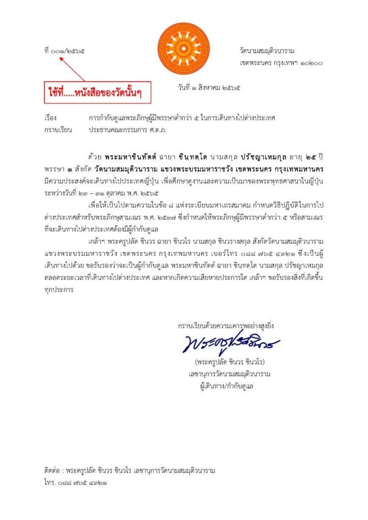 รายละเอียดเพิ่มเติมที่ ……. https://www.sortorpor.com ศูนย์ควบคุมการไปต่างประเทศสำหรับพระภิกษุสามเณร