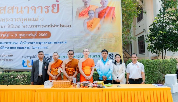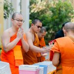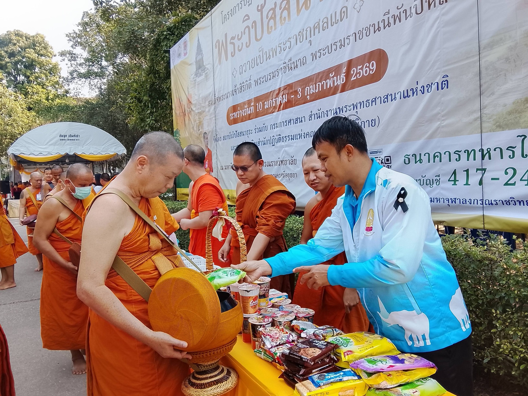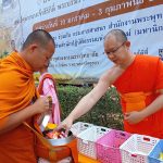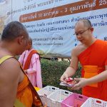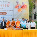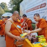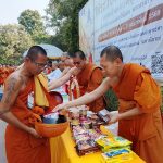รองผู้อำนวยการกองกิจการนิสิต นำบุคลากรในส่วนงาน ใส่บาตรคณะพระวิปัสสนาผู้เข้าอบรม จำนวน ๑๐๐ รูป