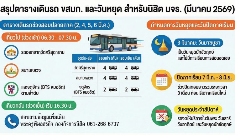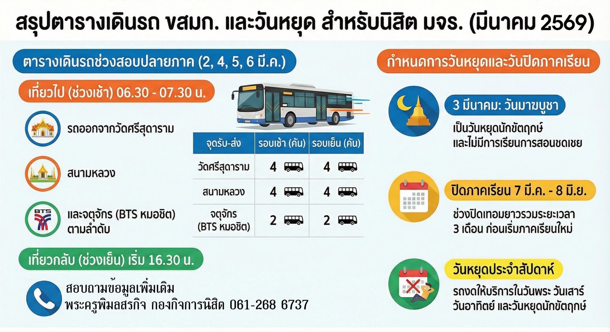 ตารางเดินรถ บริการรับ-ส่งนิสิต ประจำเดือนมีนาคม 2569