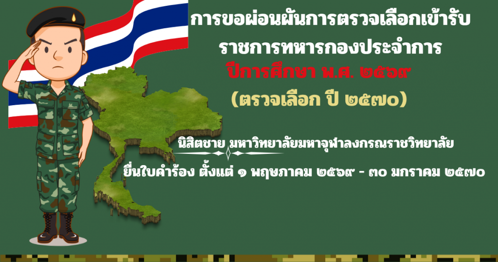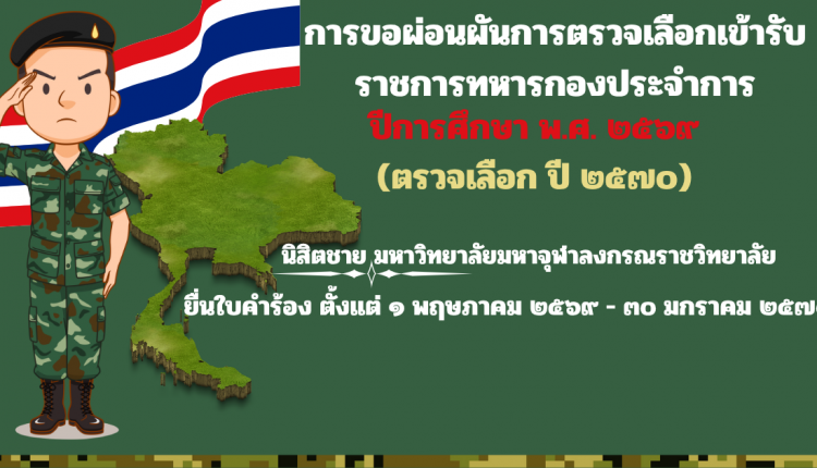 การขอผ่อนผันการตรวจเลือกเข้ารับราชการทหารกองประจำการ ปีการศึกษา 2569 (ตรวจเลือก ปี ๒๕๗๐)