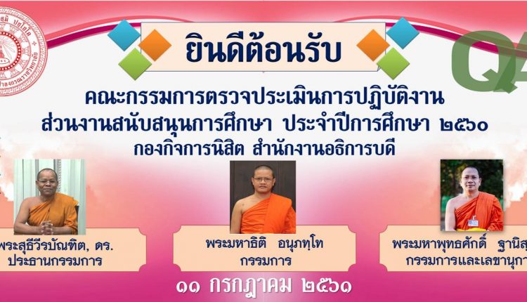วันที่11 ก.ค.2561 ณ ห้อง 300 ห้องประชุมกองกิจการนิสิต อาคารเรียนรวมโซน A มหาวิทยาลัยมหาจุฬาลงกรณราชวิทยาลัย กองกิจการนิสิต รับการตรวจประเมินการปฏิบัติงานจากคณะกรรมการ ตรวจประเมินการปฏิบัติงาน ส่วนงานสนับสนุนการศึกษา ประจำปีการศึกษา 2560 มีพระสุธีวีรบัณฑิต,ดร. ผู้อำนวยการสำนักส่งเสริมฯเป็นประธาน พระมหาธิติ อนุภทฺโท ผู้อำนวยการกองวิชาการกรรมการ และพระมหาพุทธศักดิ์ ฐานิสฺสโร เป็นกรรมการและเลขานุการ ผลการตรวจเบื้องต้น 4.43 อนุโมทนาและขอบคุณทุกท่านที่ร่วมด้วยช่วยกัน มีท่านรองสุรเชษฐ์ ตอรัมย์ รองผู้อำนวยการฯนำทีม