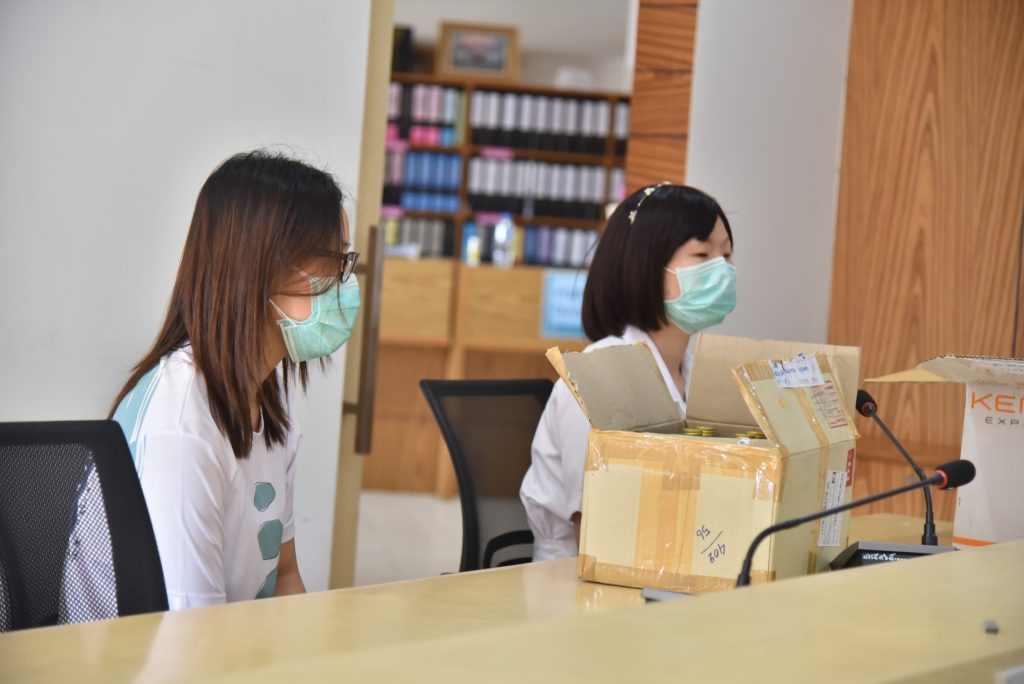 “ผู้บริหารกิจการนิสิต รับถวายเจลและสเปรย์จากคุณหมอฟันและคณะ”