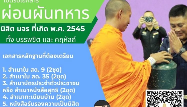 นิสิตบรรพชิตและคฤหัสถ์ ผู้ที่เกิด พ.ศ.2545 ต้องการผ่อนผันการเกณฑ์ทหาร