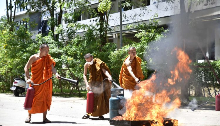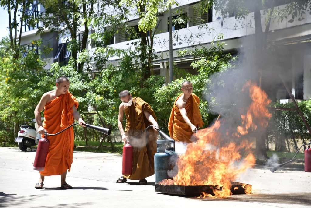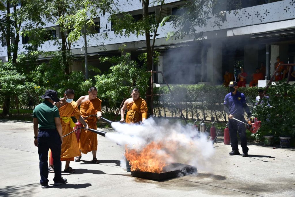 กองกิจการนิสิต สำนักงานอธิการบดี มจร จัดอบรมให้ความรู้ทักษะด้านการระงับอัคคีภัย ให้กับนิสิตหอพัก
