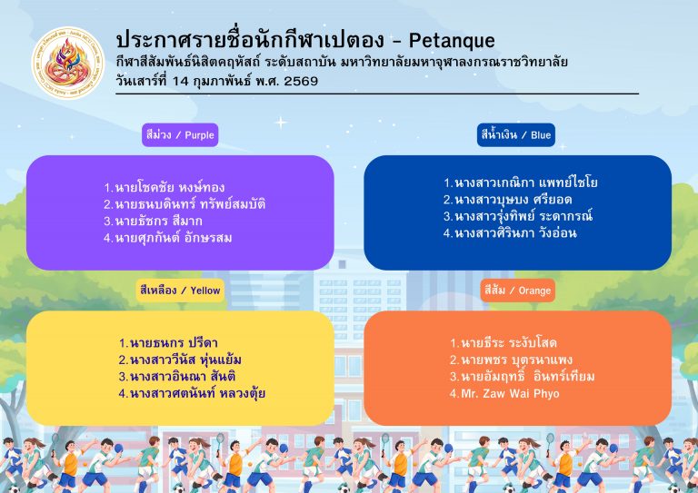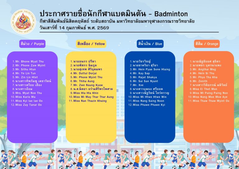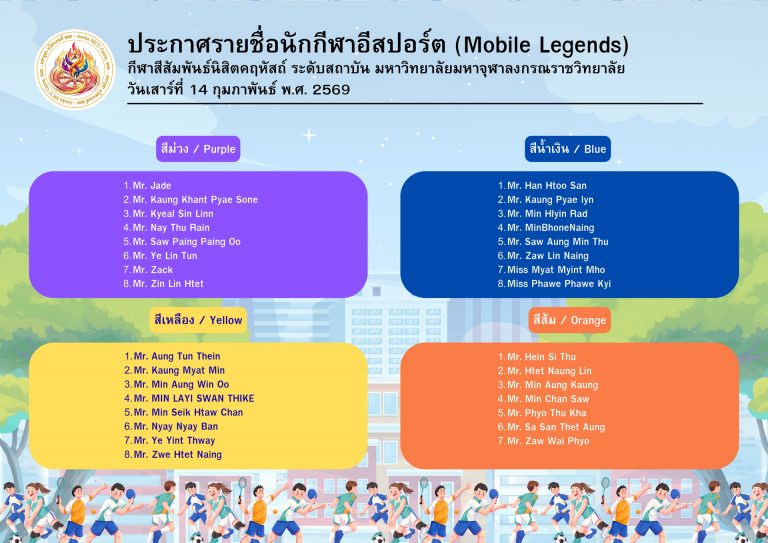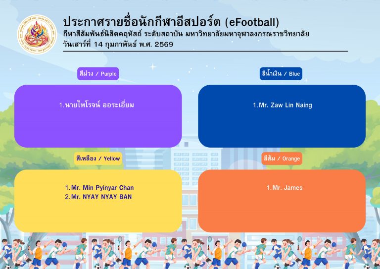 แบบสีเสื้อกีฬาประจำคณะ และฝ่ายต่างๆ