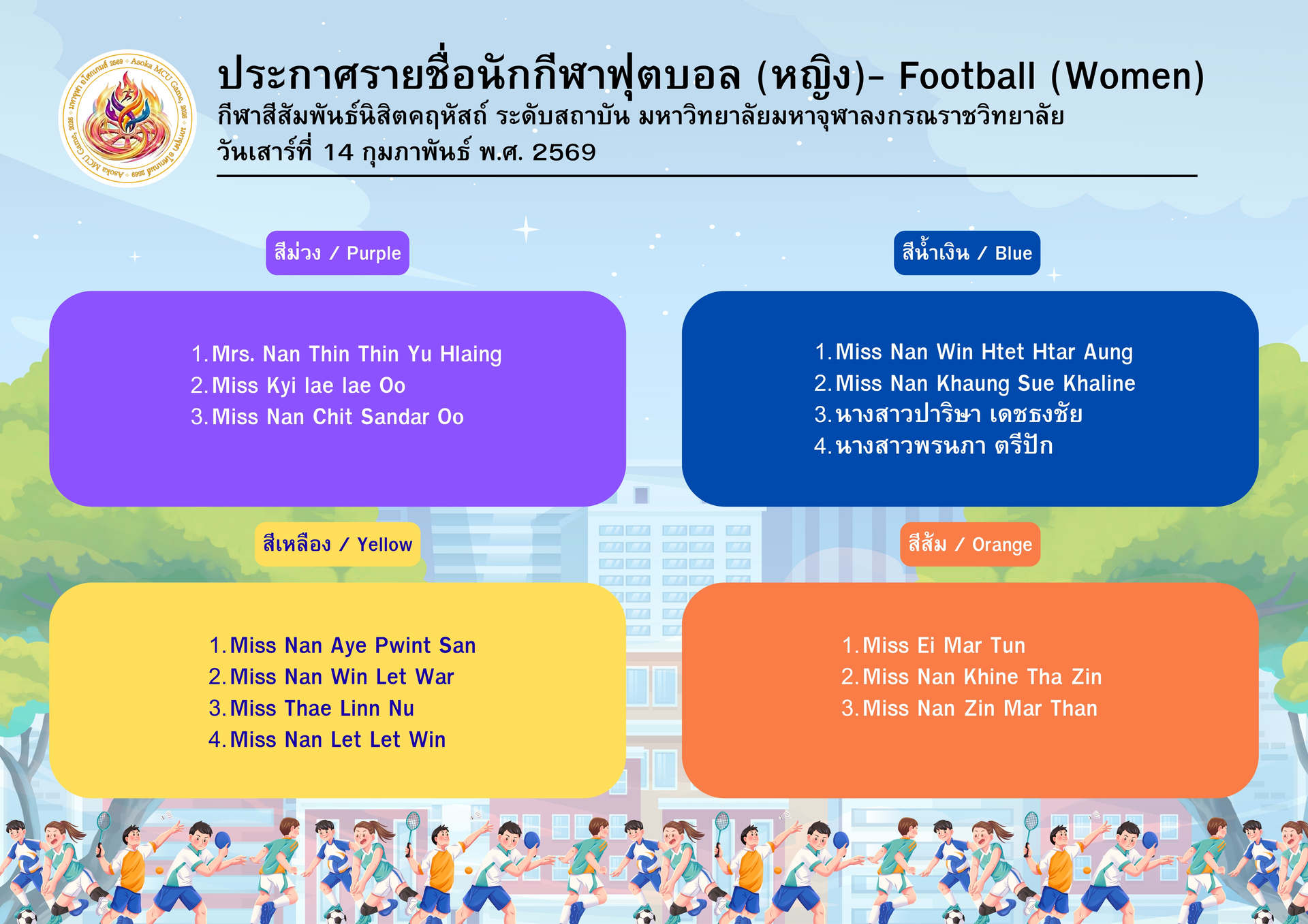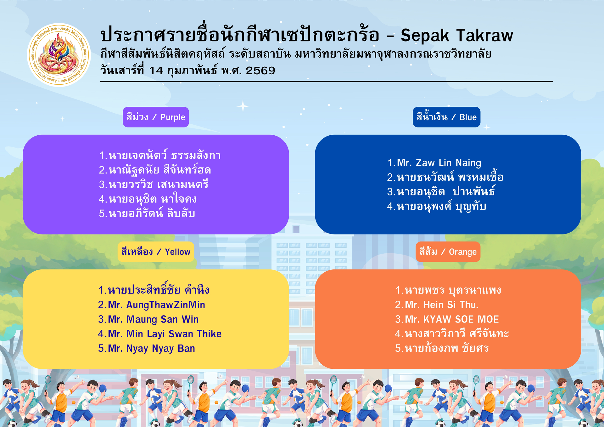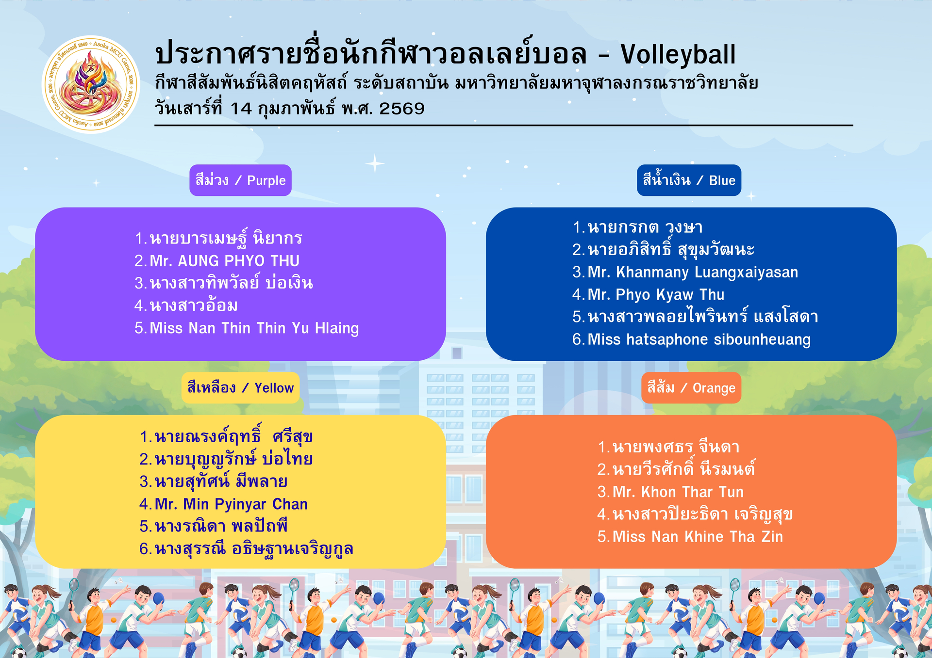 แบบสีเสื้อกีฬาประจำคณะ และฝ่ายต่างๆ